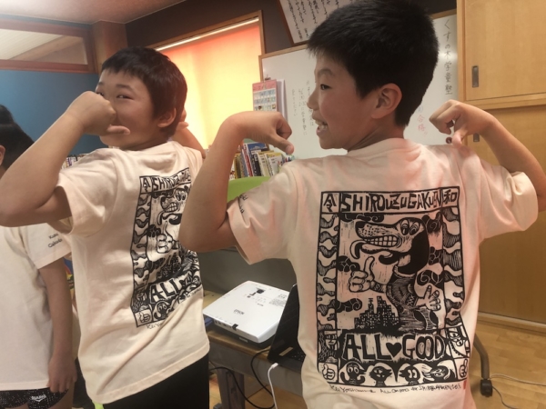今年から作成した卒塾記念Tシャツ。上記の年長時の体操記念Tシャツはみんなパツパツ